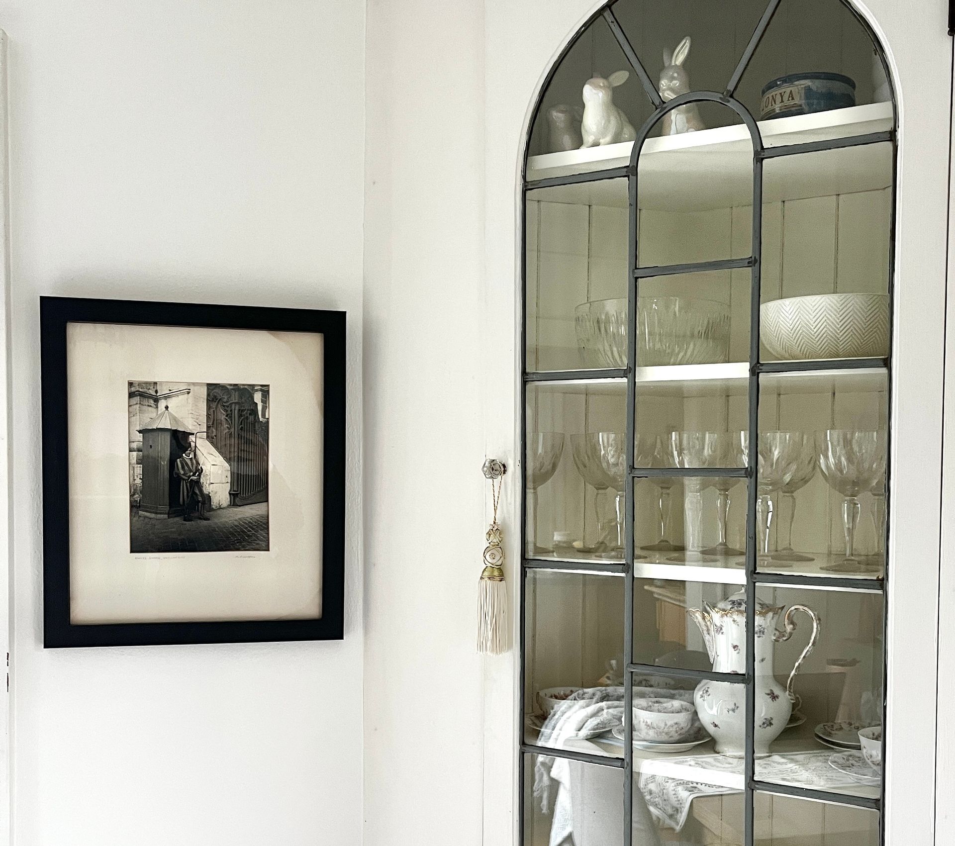 I love decorating with our history and memories. Here’s a picture of a cabinet filled with passed down heirlooms and a photograph my grandfather took in Rome after WWII. For me, having these meaningful items on display makes my house feel like home.